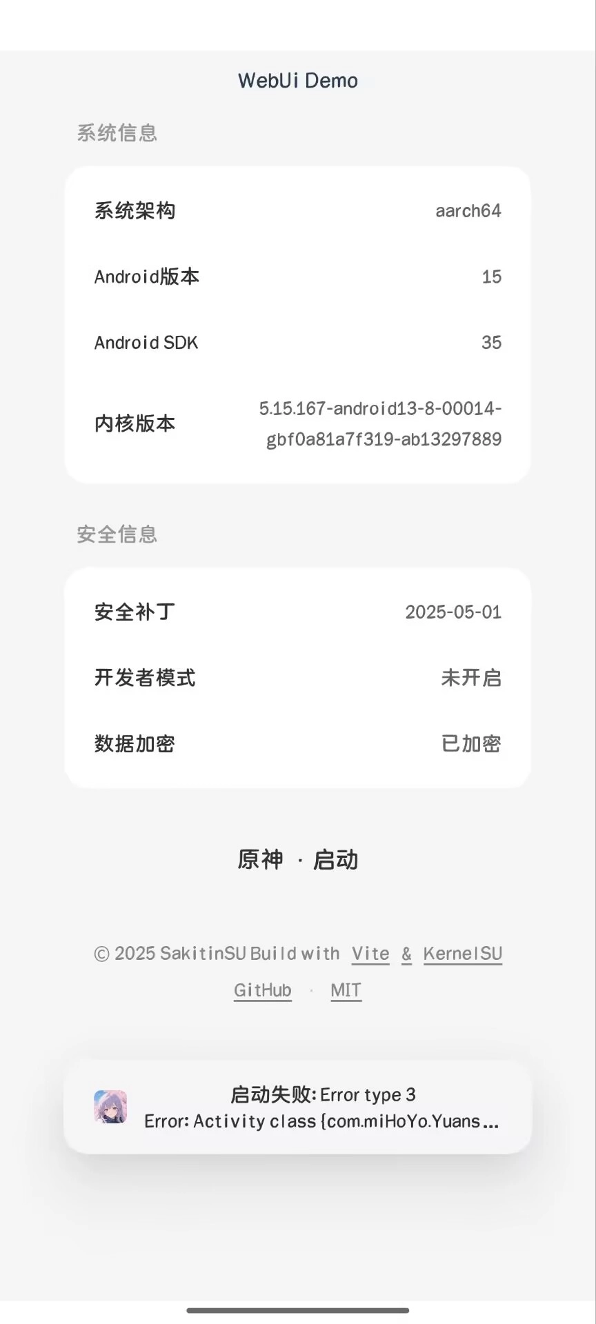 我们提供了一个简单的 WebUI Demo,它使用 vite 进行打包,并基于 vue3 开发, 同时集成了 KernelSU 包,以帮助您快速入门